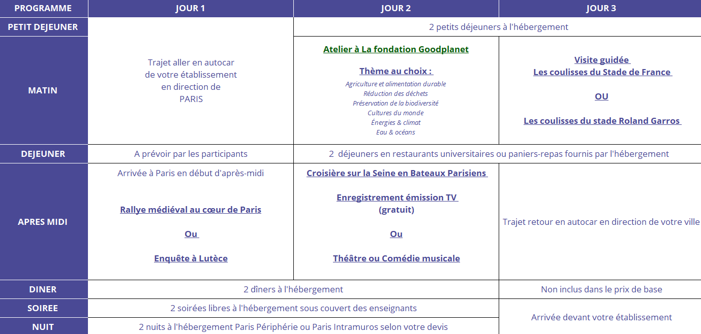 Partagez avec vos élèves une expérience unique au cœur de la Ville Lumière ! Ce séjour combine découvertes culturelles, défis captivants et activités autour de l’écologie. De la grandeur des monuments parisiens à des activités immersives, vos élèves vivront un voyage aussi enrichissant qu’inoubliable.